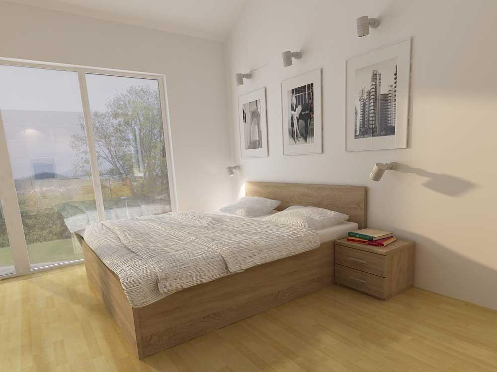 s stranicami do tal je izredno trdna in stabilna postelja. Dovršena konstrukcijska izvedba naredi posteljni okvir trden in stabilen. Izdelan je iz oplemenitene iverne plošče proizvajalca Swiss Krono debeline 25mm, ter zaključen z nežno zaokroženimi robovi ABS. Okvir je spojen s kovinskim spojnim okovjem ter sredinsko vezno letvijo. Postelja širine 140,160, 180 in 200 ima vgrajeno še sredinsko nosilno letev na katero je pritrjena dodatna sredinska noga. V horizontalni smeri je okvir dodatno ojačan s sredinskim križem. Višina stranice 38cm ter debelina 2,5cm zagotavlja izredno trdnost postelje. Nastavljivo okovje omogoča regulacijo višine vzmetnice za 8cm, ter nam tako omogoča prilagoditev vzmetnice na želeno višino. Zaradi omejitve prostora vam lahko višino vzglavne končnice tudi znižamo (brez doplačila).