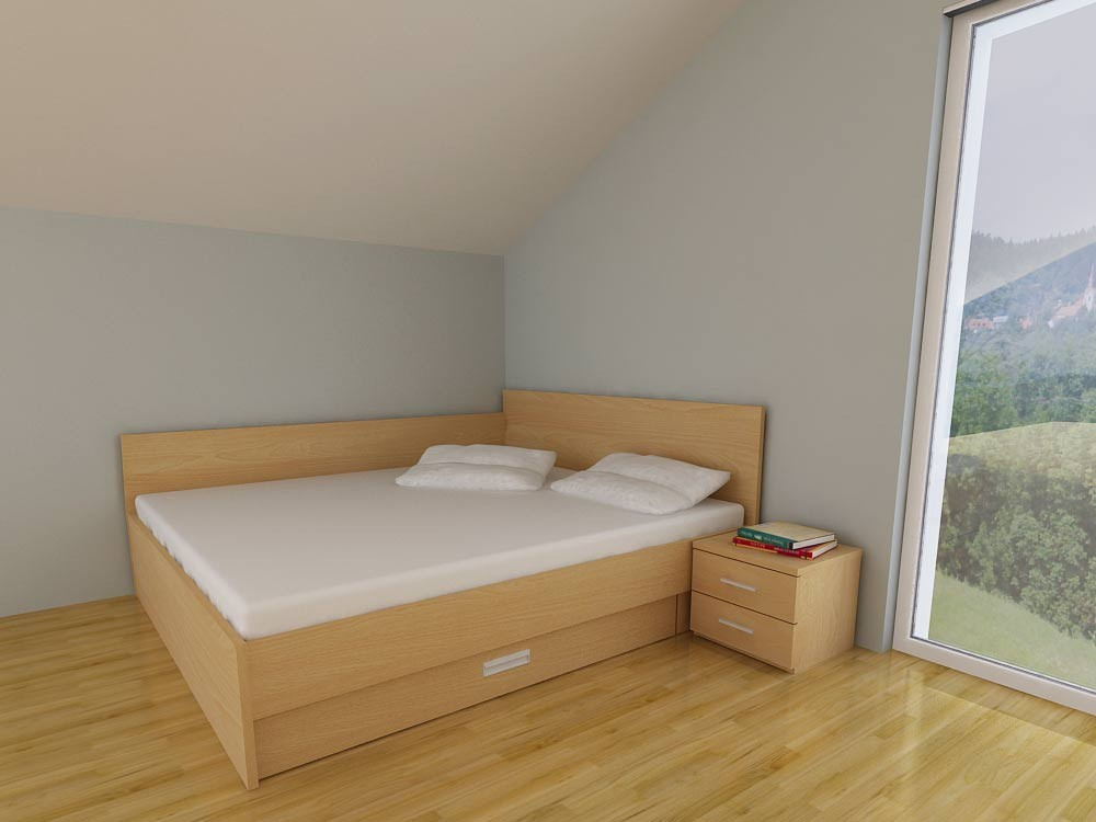 Za lažje spravilo oblačil pa je dodan podposteljni predal. Podposteljni predal se lahko odpira z leve ali desne strani postelje. Podposteljni predal je lahko tudi krajši - ob uporabi nočne omarice. Zaradi omejitve prostora vam lahko višino vzglavne končnice tudi znižamo (brez doplačila).